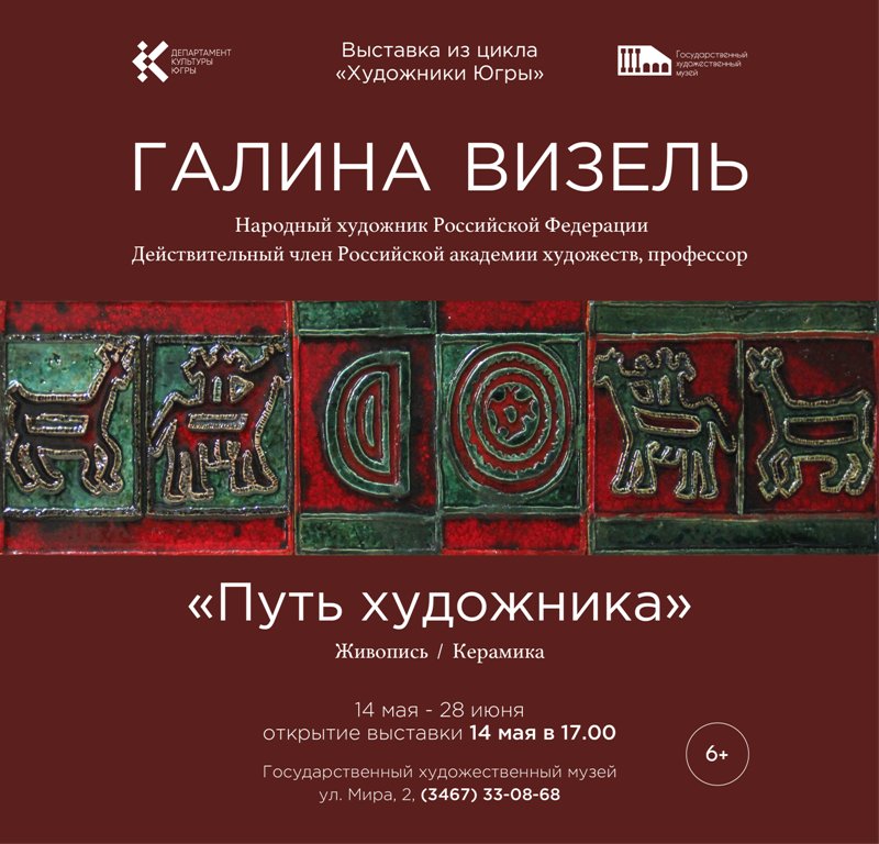 14 мая в Государственном художественном музее в рамках цикла «Художники Югры» открывается выставка народного художника Российской Федерации, академика Российской академии художеств, профессора Галины Михайловны Визель. На выставке «Путь художника», посвященной 85-летнему юбилею художницы, представлены произведения живописи и керамики 1960-х – 2010-х годов.