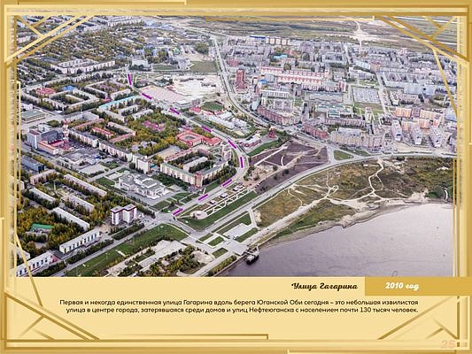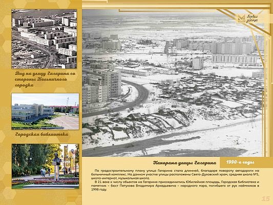 По градостроительному плану улица Гагарина стала длинней, благодаря повороту автодороги на больничный комплекс. На данном участке улицы расположены Свято-Духовский храм, средняя школа №5, школа-интернат, музыкальная школа, мемориальный комплекс «Верным сынам Отечества». Улица Гагарина проходит между Комсомольским бульваром, где установлен бюст Владимира Аркадьевича Петухова (первого всенародно избранного мэра города) и площадью Юбилейной, на которой расположены современные здания Городской библиотеки и спорткомплекса «Жемчужина Югры».