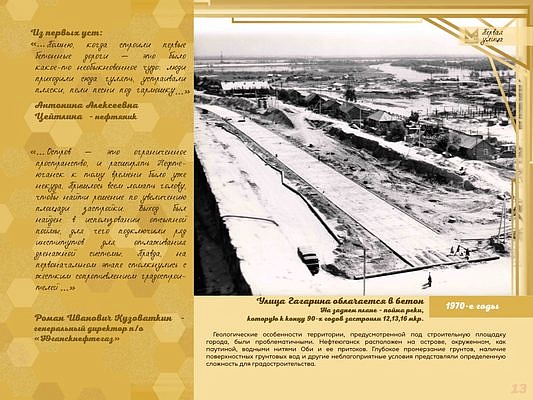 Вот несколько очень интересных фотографий, представляющих вид одного из районов Нефтеюганска конца 1970-х - начала 2000-х годов. На черно-белой фотографии хорошо видно, что территория будущих микрорайонов – с 14 по 17, а так же территория деревушки Усть-Балык – затапливалась водами Юганской Оби. На первом плане идет планировка территории и строительство дороги, а береговая зона еще многие годы была не благоустроена.
