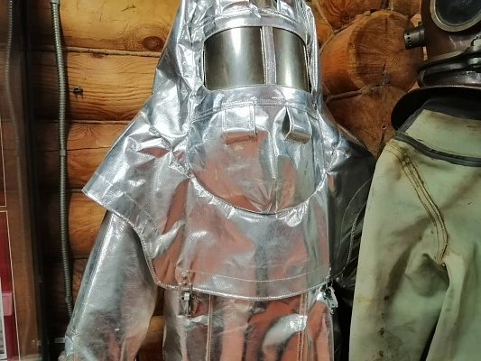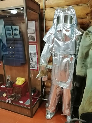 В фондах нашего Музейного комплекса хранится защитный теплоотражающий костюм пожарного. Посетители могут поближе познакомиться с этим экспонатом на выставке «Город, рождённый нефтью» Культурно-выставочного центра «Усть-Балык». Этот комплект спецодежды передал в дар нашему музею бывший сотрудник ОГПС-6 Бимбаш Владимир Владимирович.