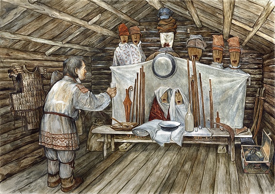 Из рощи изображения переносятся в амбар (тонх-топас), который стоит близ восточного берега озера, среди густого урмана на полянке, поросшей березами после пожара.