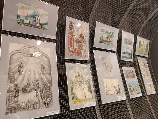 На выставке представлено более 60 художественных работ, которые объединены в тематические серии: «Православие», «Природа», «Малая родина», «Архитектура». В работах использованы различные техники: акварель, масло, гуашь и графика. -