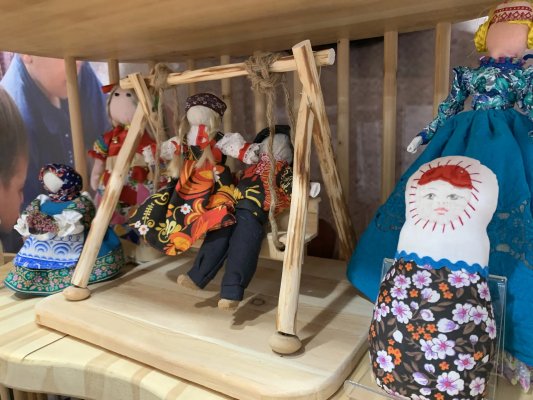 На выставке представлено многообразие форм и материалов: от простых, вырезанных из дерева фигурок до сложных, искусно расписанных и расшитых кукол. Все экспонаты изготовлены преподавателями совместно с учащимися школы.