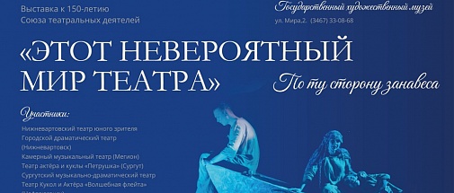20 марта в 17.00 в Государственном художественном музее открывается выставка «Этот невероятный мир театра», посвященная 150-летие Союза театральных деятелей России, старейшего профессионального творческого объединения нашей страны. Организаторы выставки: Ханты-Мансийское региональное отделение С
