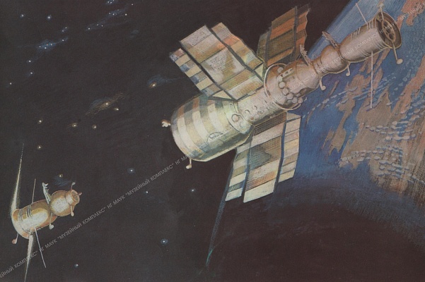2. Набор настенных картин. Цикл «В космос», рисунки художника Ю. Копейко. Автор текста Герой Советского Союза, летчик-космонавт СССР Юрий Глазков. Издательство «Малыш», 1989.