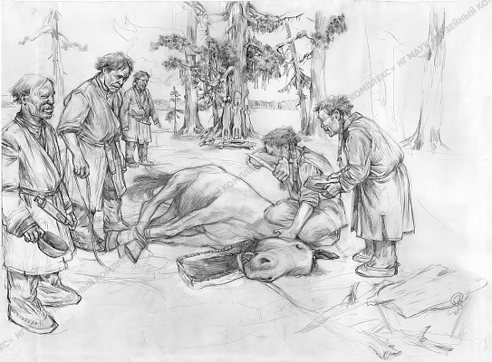 Вот, к примеру наконечник стрелы. Если он обнаружен в погребении, то является частью личного, сугубо сакрального инвентаря, запрещённого к использованию другими людьми. Его предназначение сопровождать своего владельца в нижнем мире, особенно на первых порах, на ряду с привычным ножом, топором, теслом и даже лодкой. Помогать ему адаптироваться в но-вых обстоятельствах. Этот предметный ряд характеризует владельца как личность со своими предпочтениями, сильными сторонами и недостатками.