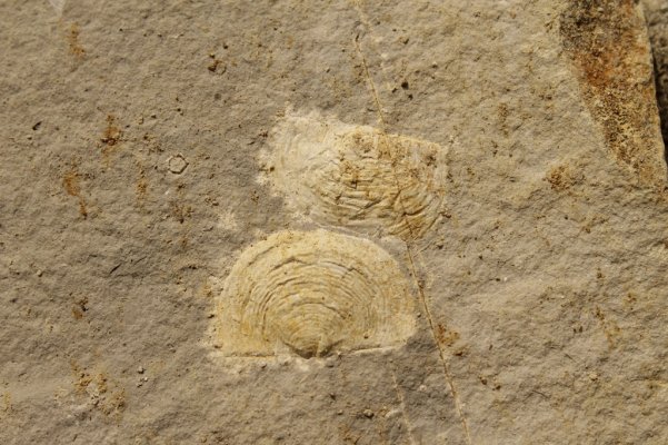 Фото 1. Отпечатки спинных створок брахиопод, р. Северная Сосьва, 350 млн.л.